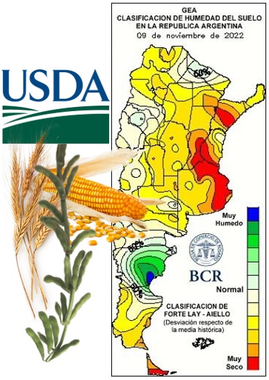 El USDA proyecto leve aumento de producción mundial de trigo para la 22/23, y también elevó el consumo y exportaciones, casi en mismas proporciones, lo que causó que los stocks no se movieran significativamente, dejando la relación stock/consumo en torno a 34%, un valor que presiona los mercados a la baja. No se ajustaron proyecciones de producción ni exportaciones para Rusia y Ucrania, no reflejando futuros recrudecimientos del conflicto entre estos dos países, que recorten oferta exportable al mundo de este cereal. En cuanto a las proyecciones de Argentina, el USDA recortó en 2 MM TN la producción y exportaciones 22/23, a 15,5 MM TN de producción y 10 MM TN de exportación. Cuando vemos las proyecciones de la BCBA, esta recorta por quinta semana consecutiva el volumen a cosechar a 12,4 MM TN, de 17,5 MM TN que proyectaban hasta la primera semana de octubre 2022, Mientras la BCR proyecta una cosecha de 13,7 MM TN. Significa que, mientras el USDA recorta 2 MM TN, a nivel local se recortaron 5 MM TN. Las exportaciones locales, que para la 21/22 acumularon un total de 14,6 MM TN, hasta ahora, acumulan compromiso de exportación, a través de Declaraciones Juradas de Ventas al Exterior (DJVE) de casi 9 MM TN, siendo que los productores le han vendido en forma anticipada a la exportación casi 5,4 MM TN y se resolvió dar a la exportación la posibilidad de postergar estos compromisos por un año, ante las proyecciones cada vez más ajustadas de cosecha.